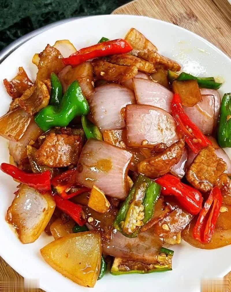 1. 准备食材:将猪肉切成薄片或块状(根据个人口感),洋葱去皮切成粗丝或块,姜切片,蒜拍散,葱切段备用。